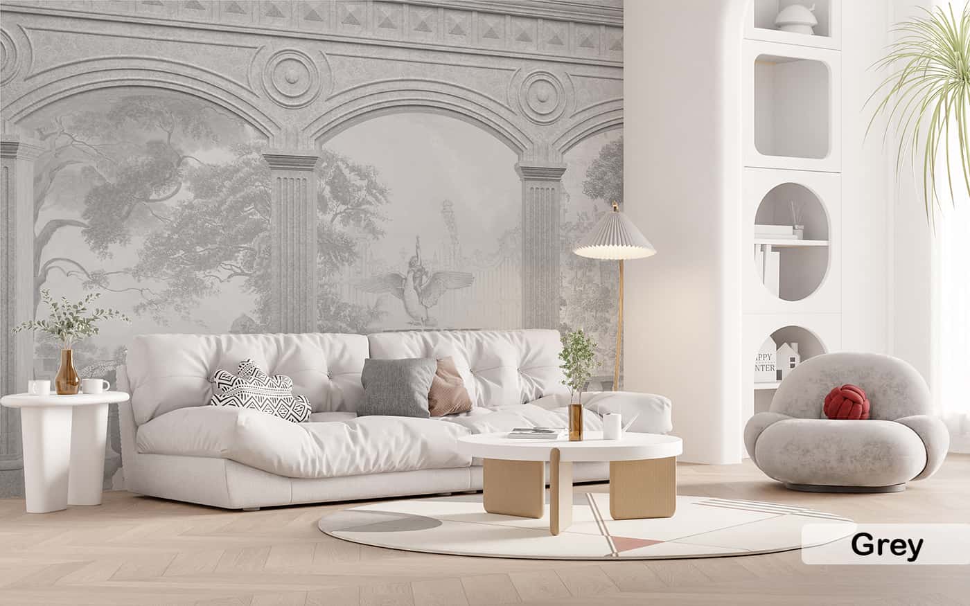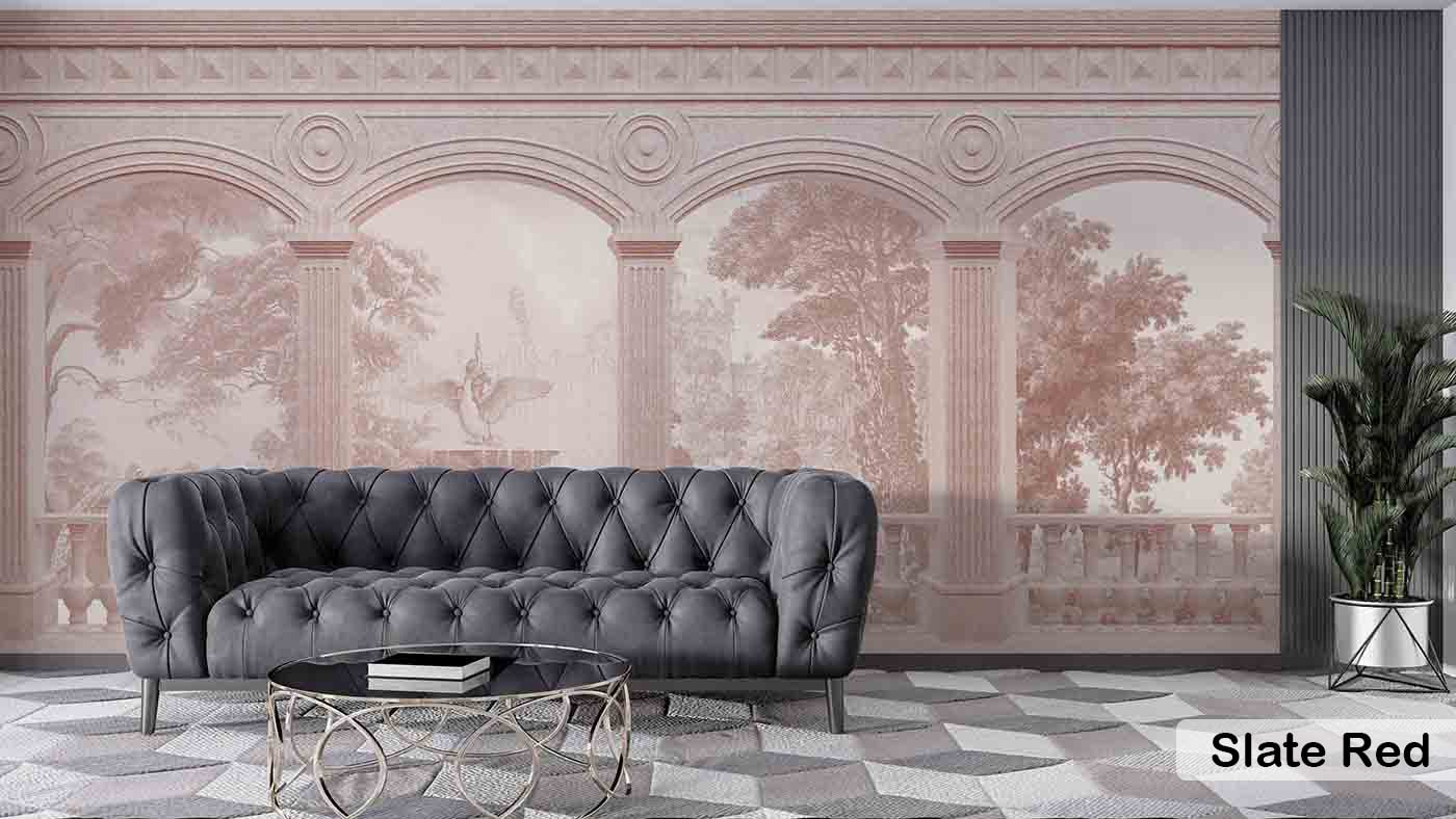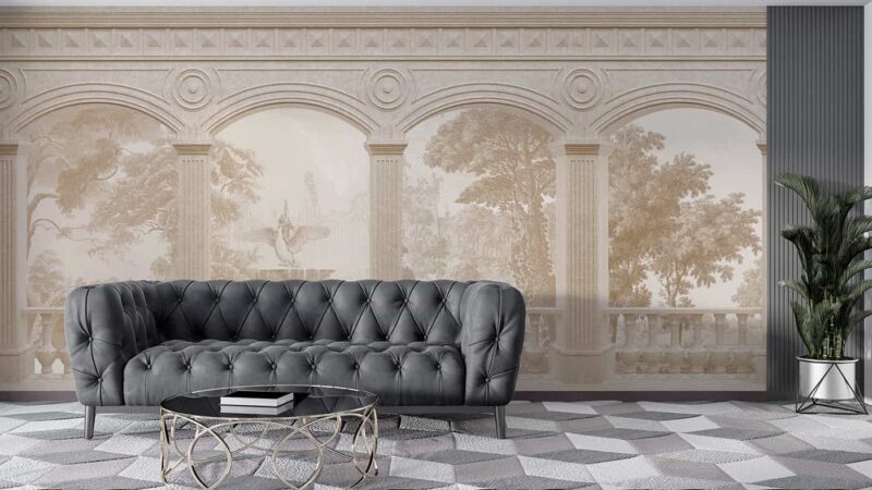 3D Arch & Fountain Wallpaper European Architecture Wall Design for Luxury Interiors