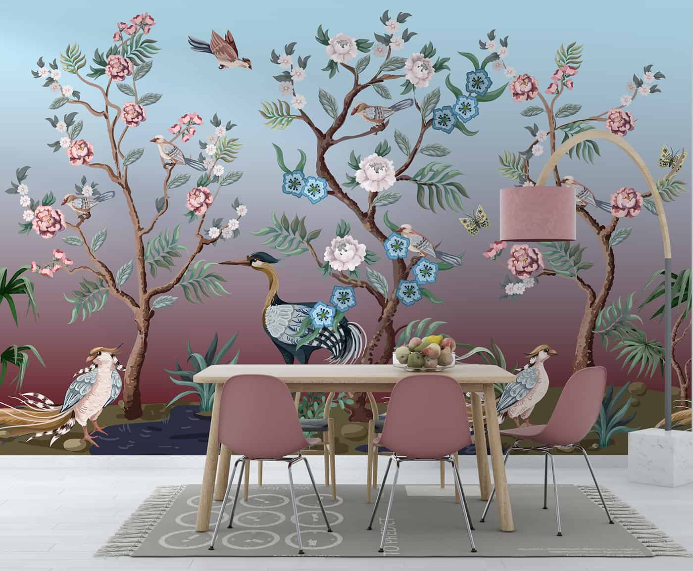 Chinoiserie Bird & Blossom Mural