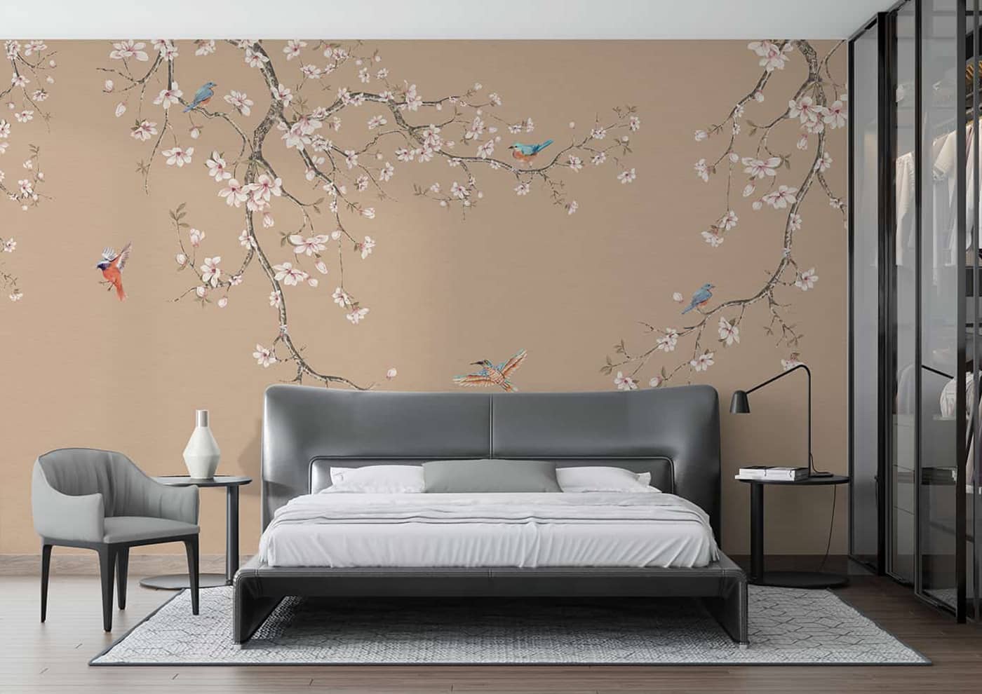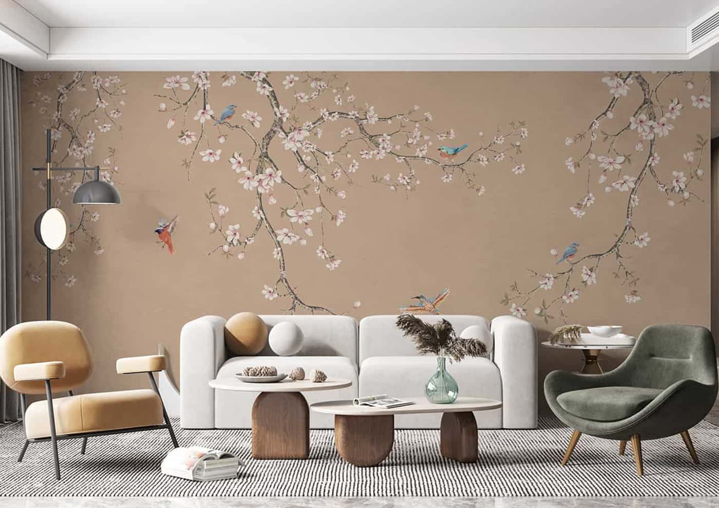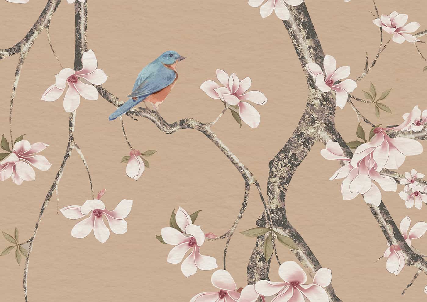 Chinoiserie Cherry blossom flowers and birds Wallpaper Mural