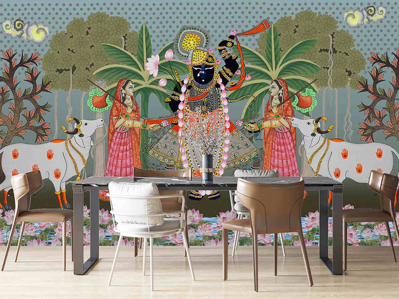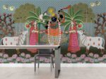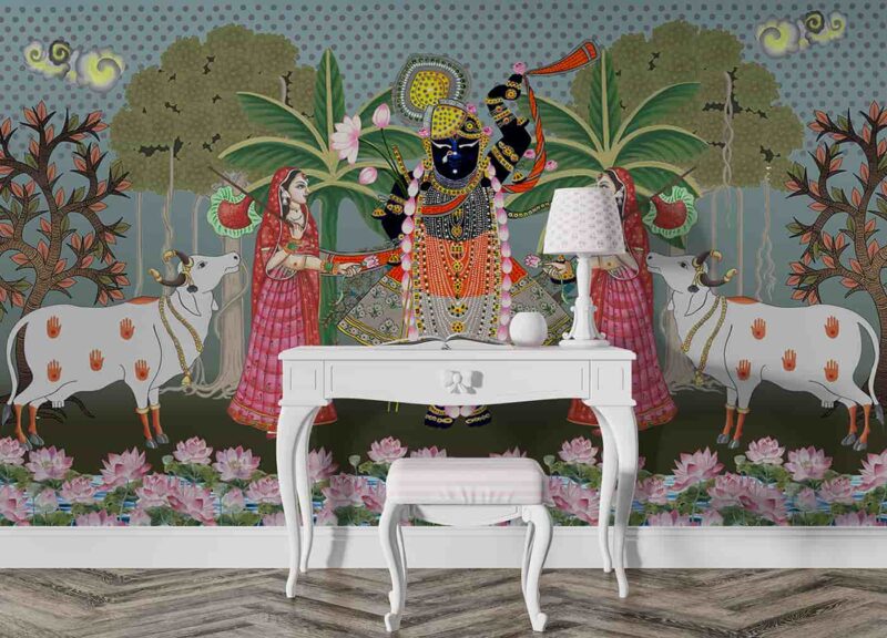 Divine Krishna Wall Decor | Pichwai Style Wallpaper Mural for Living Spaces