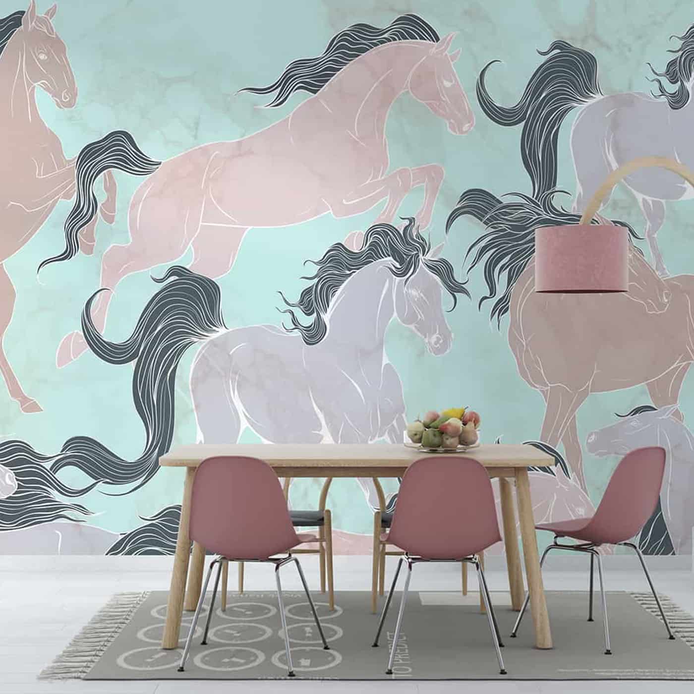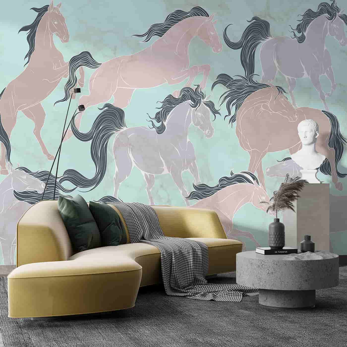 Galloping Horses in pastel shades Wallpaper