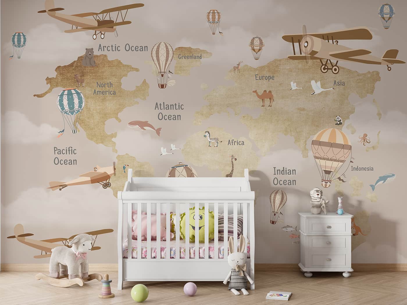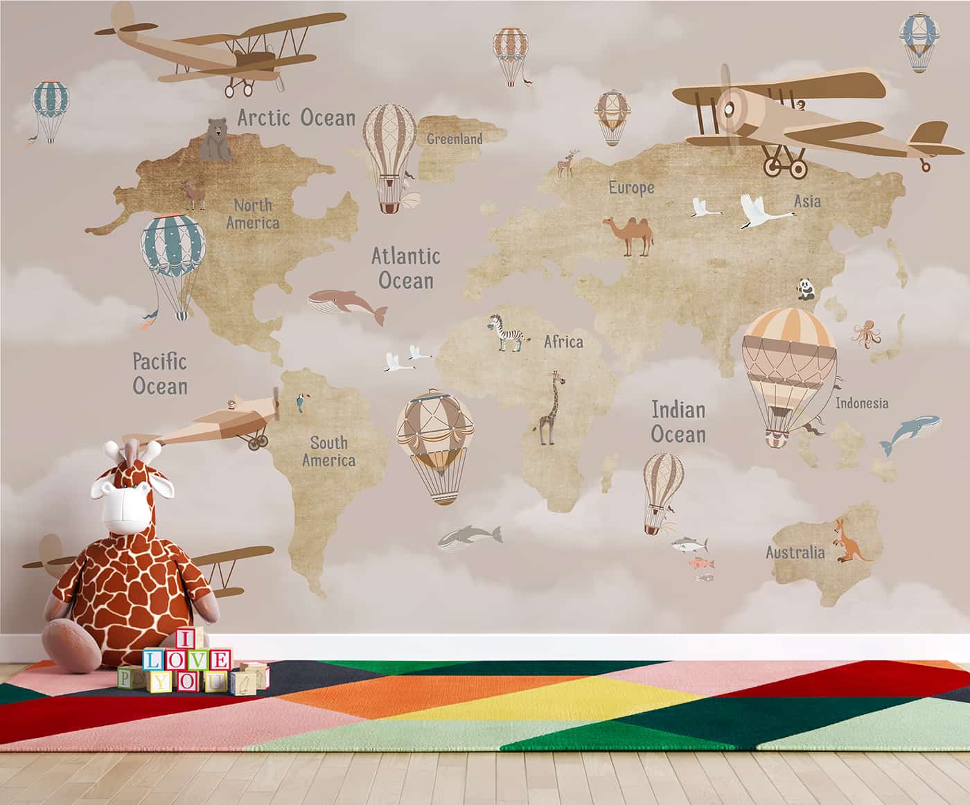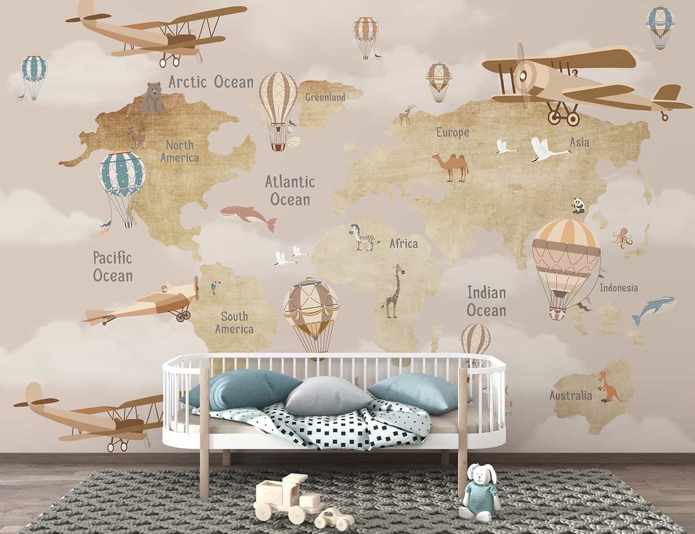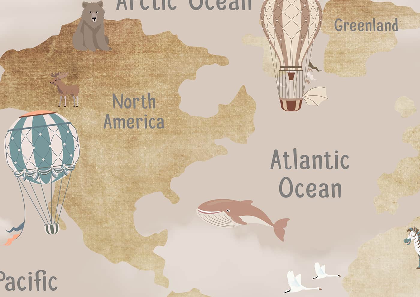 Kids Map- Brown with Glider Hot Air Balloon