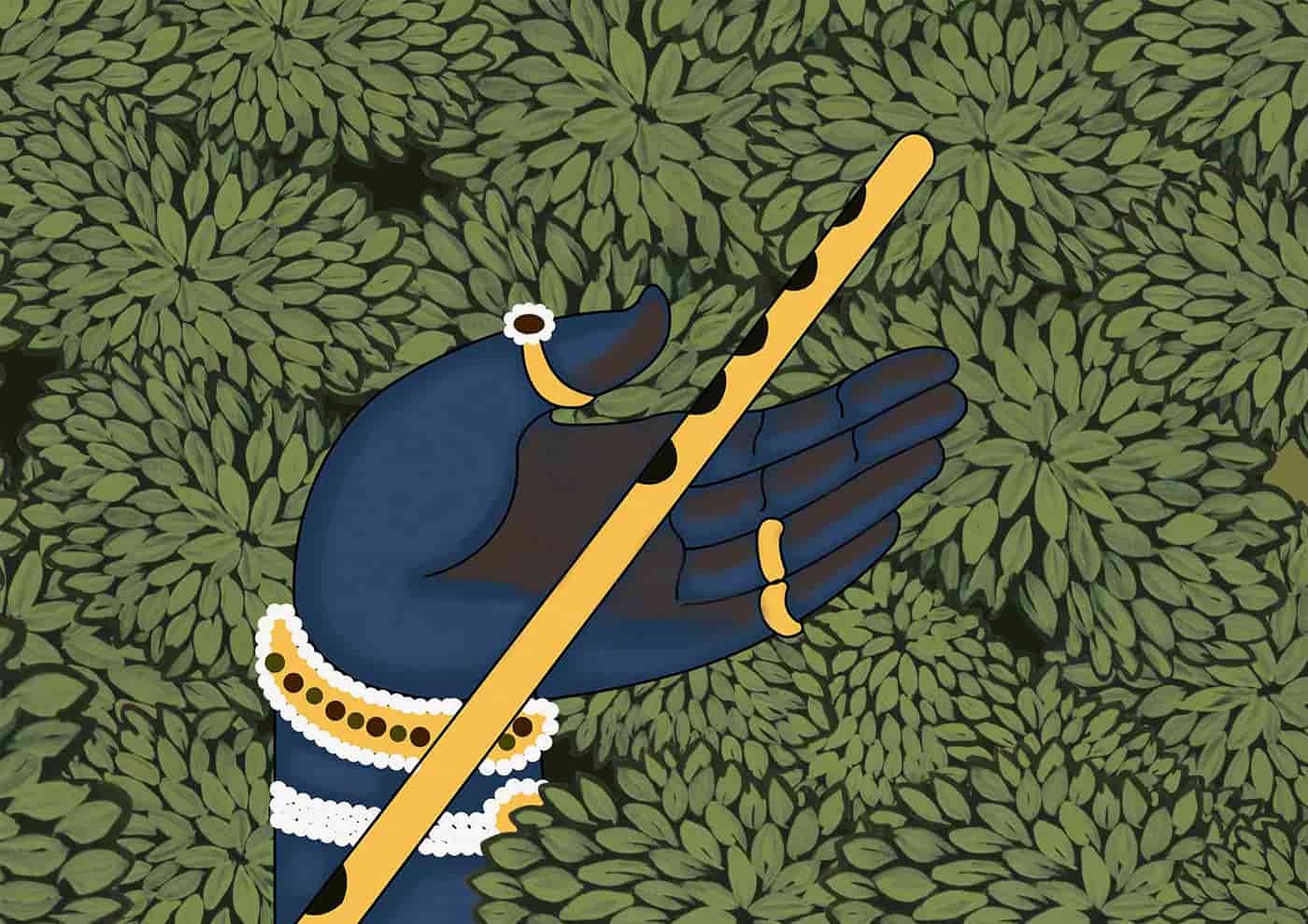 Krishna with flute and cow herds wallpaper 1