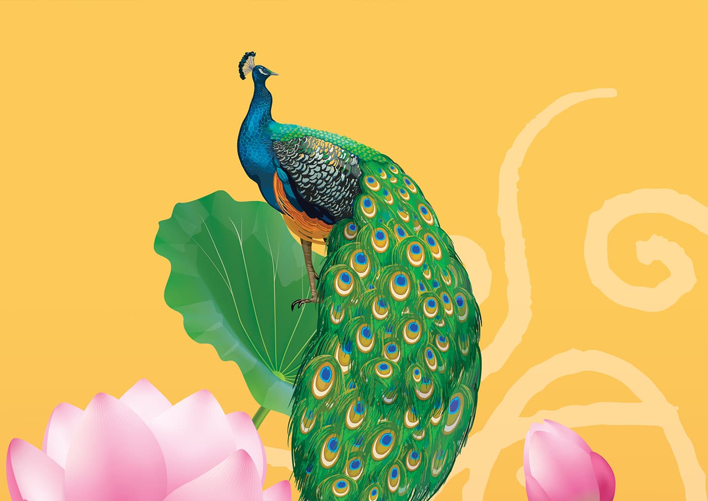 Peacocks on Blooming Lotuses