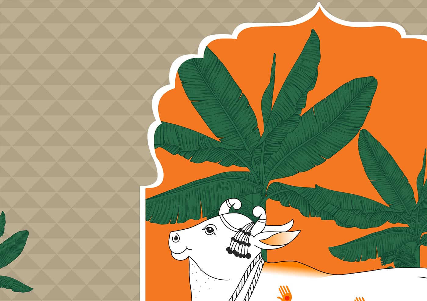 Pichwai Cows and Banana leaves Wallpaper Mural s