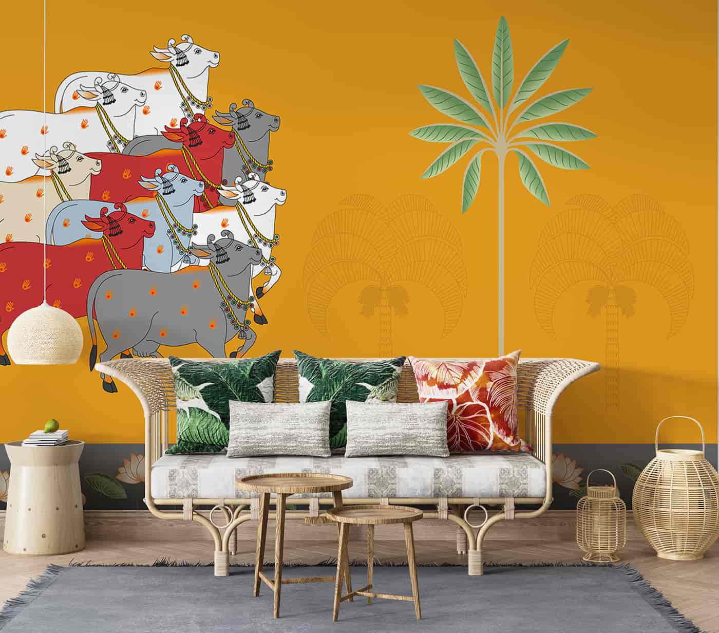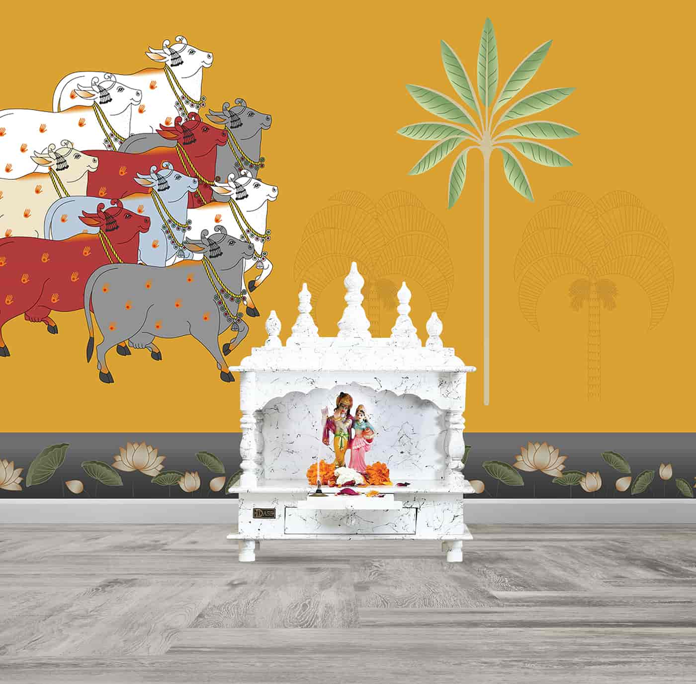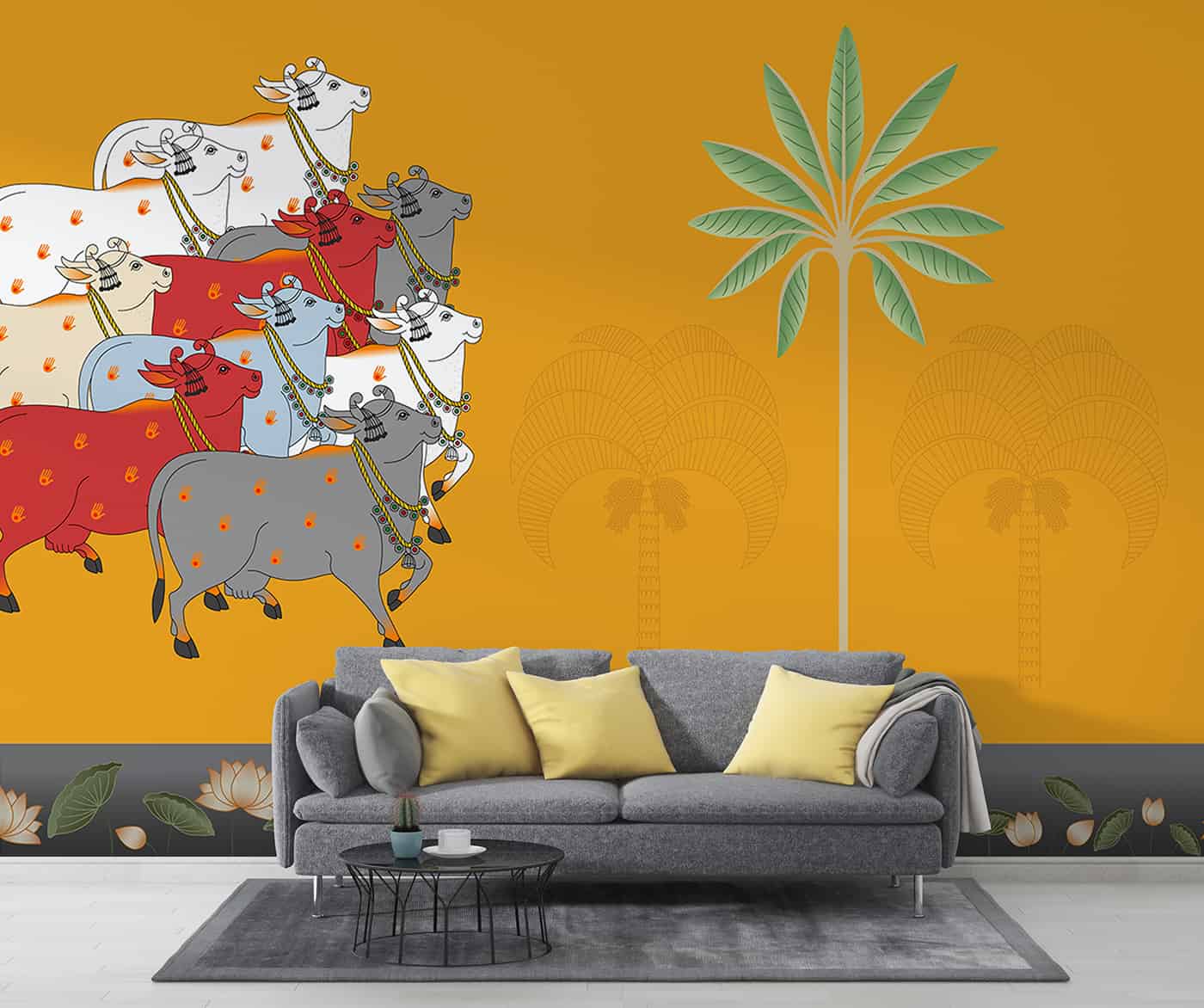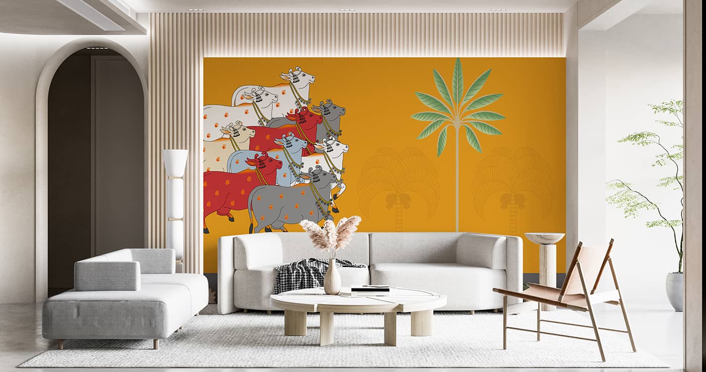 Pichwai cows and lotuses Wallpaper Mural