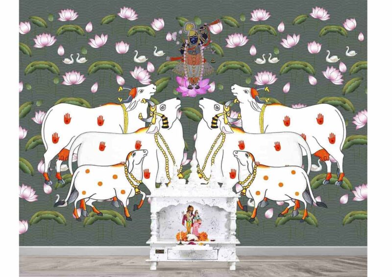 Pichwai-Krishna in lotus pond Indian Pichwai wallpaper