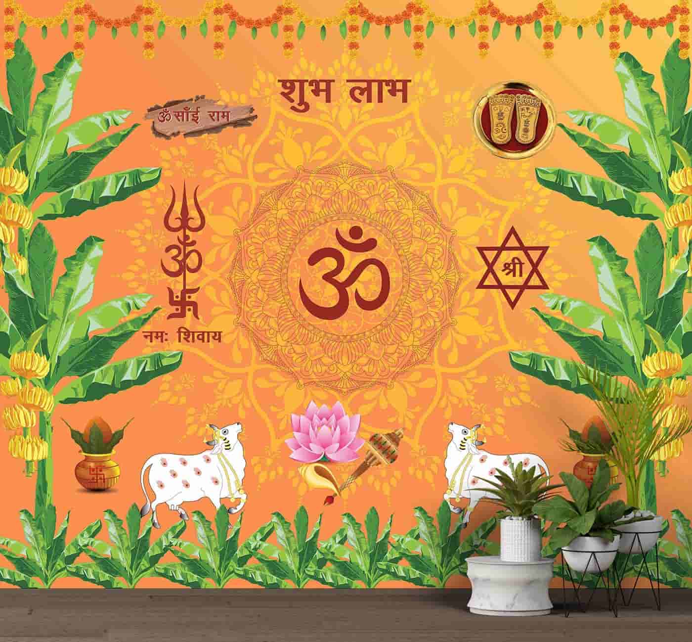 sacred Om Wallpaper Mural-Spiritual Sanskrit Mantra Wall Covering for Prayer Room