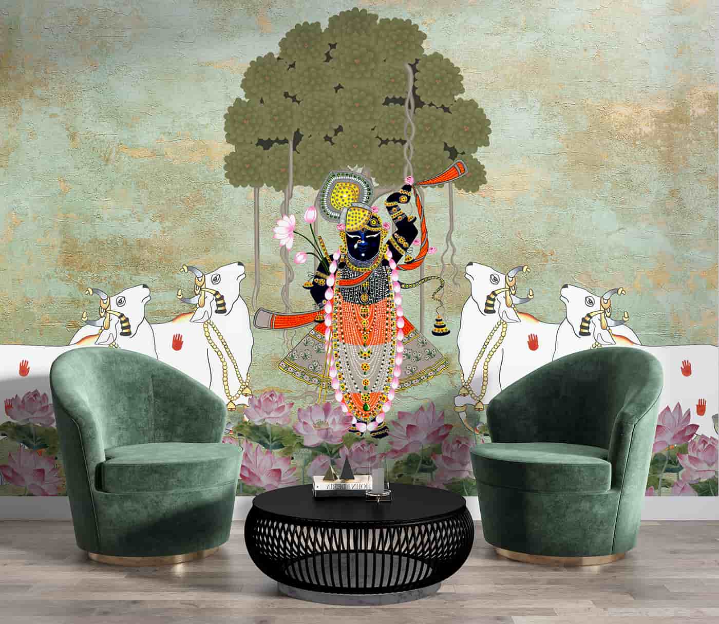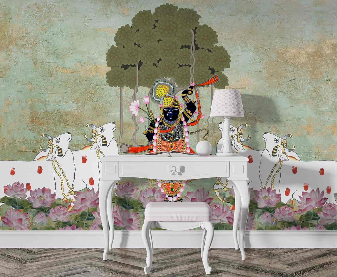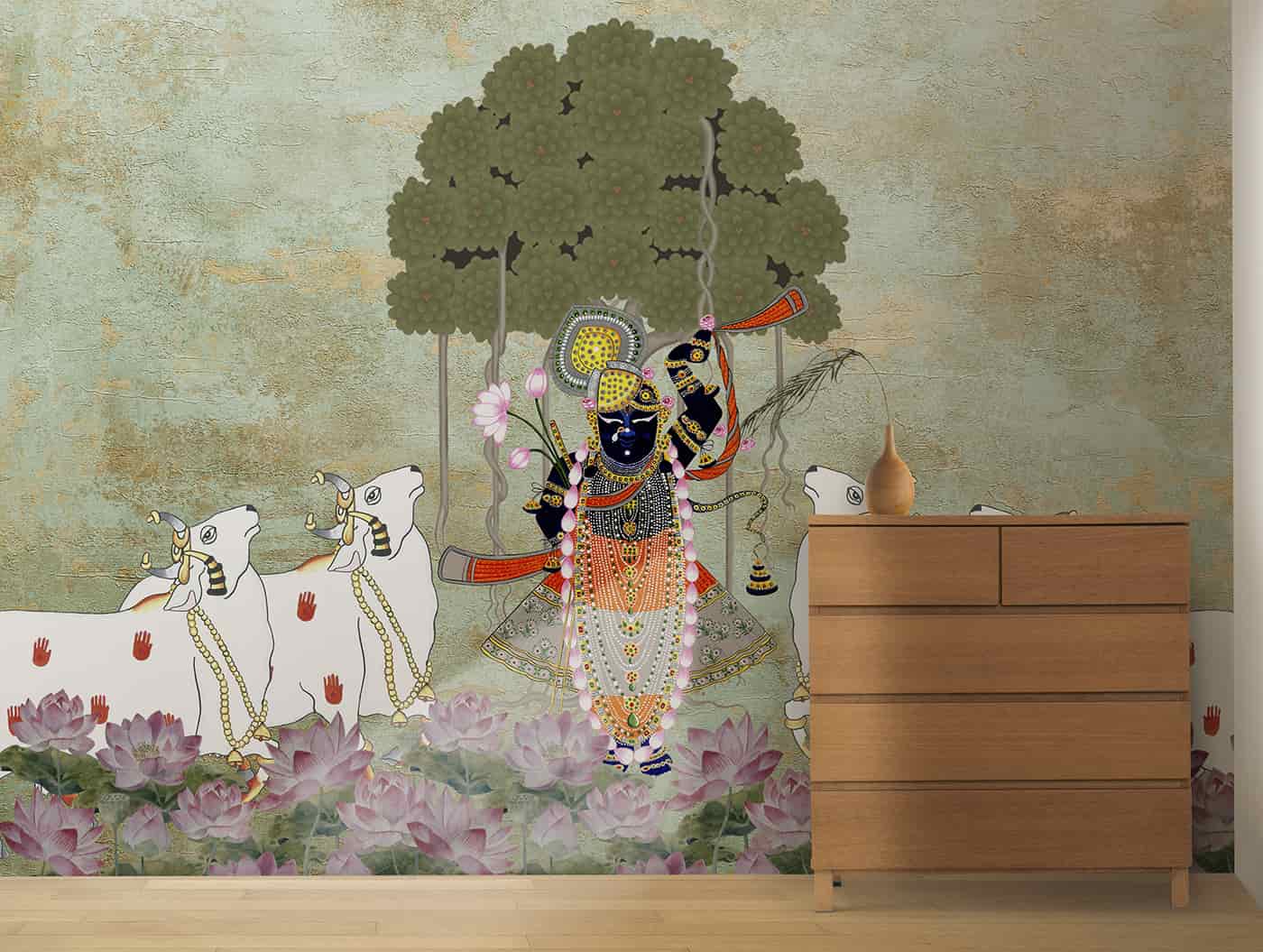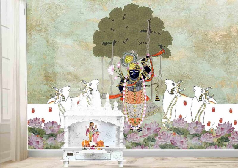 Srinathji under Bargad tree with Lotuses