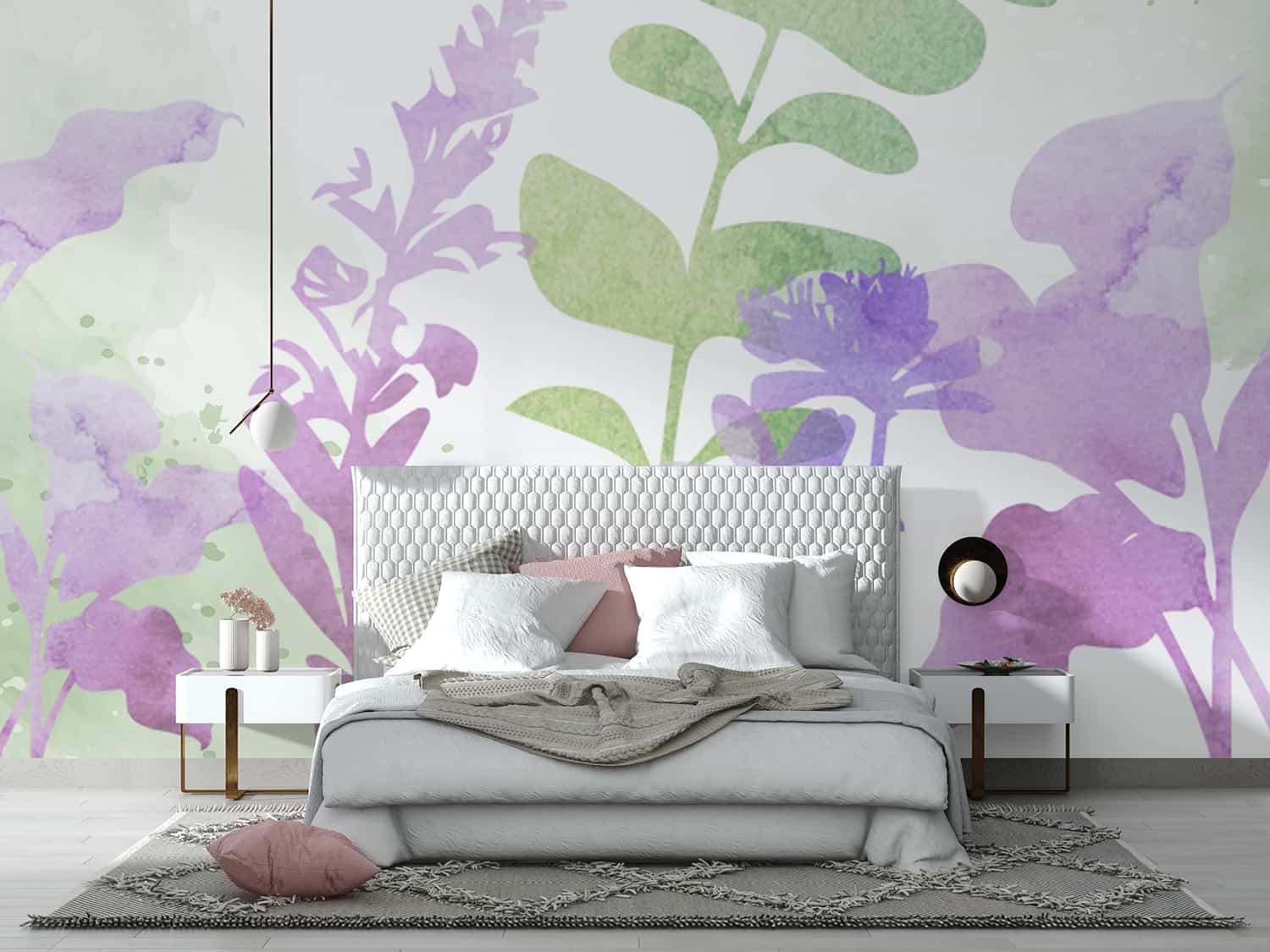 A white bouquet of flowers suggesting a very soft and pristine look to your space. Calm your senses with this wall mural in your bedroom or living room walls.