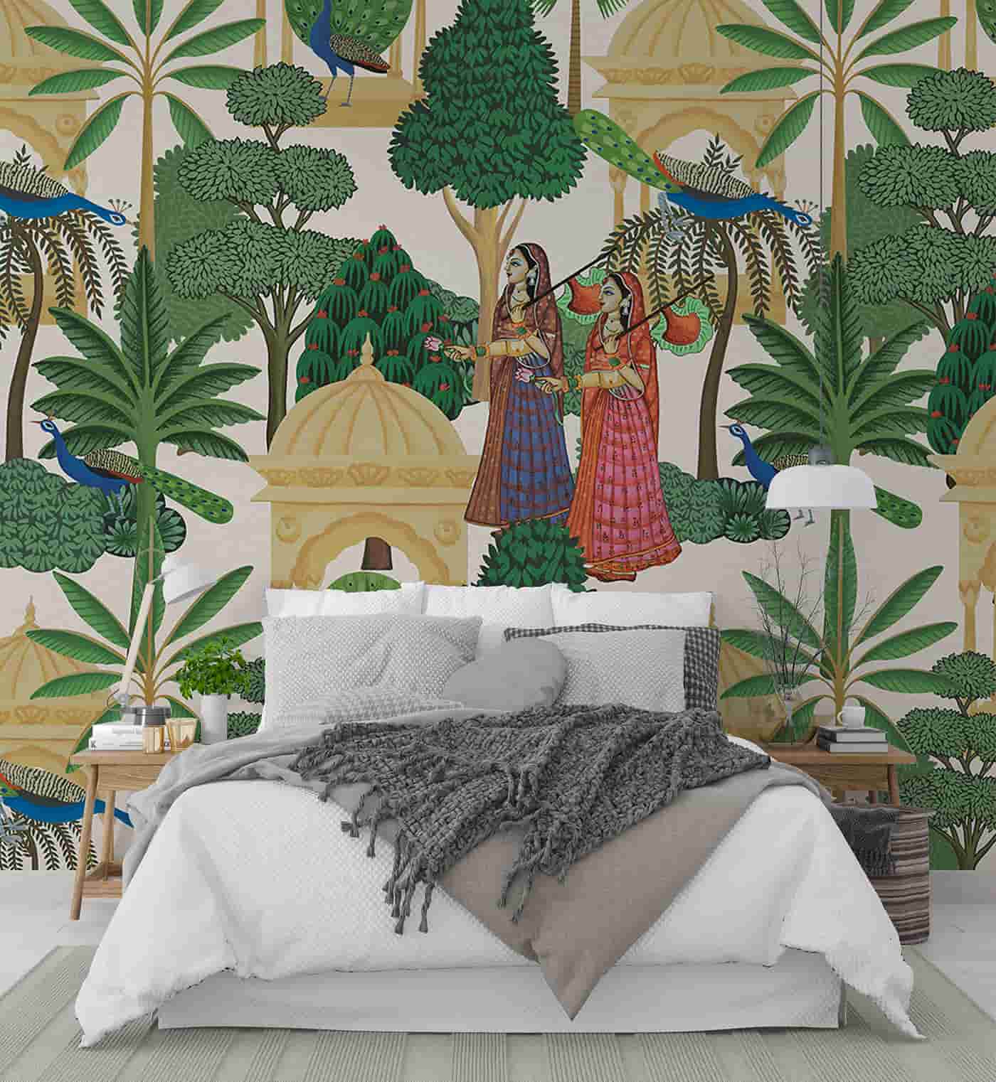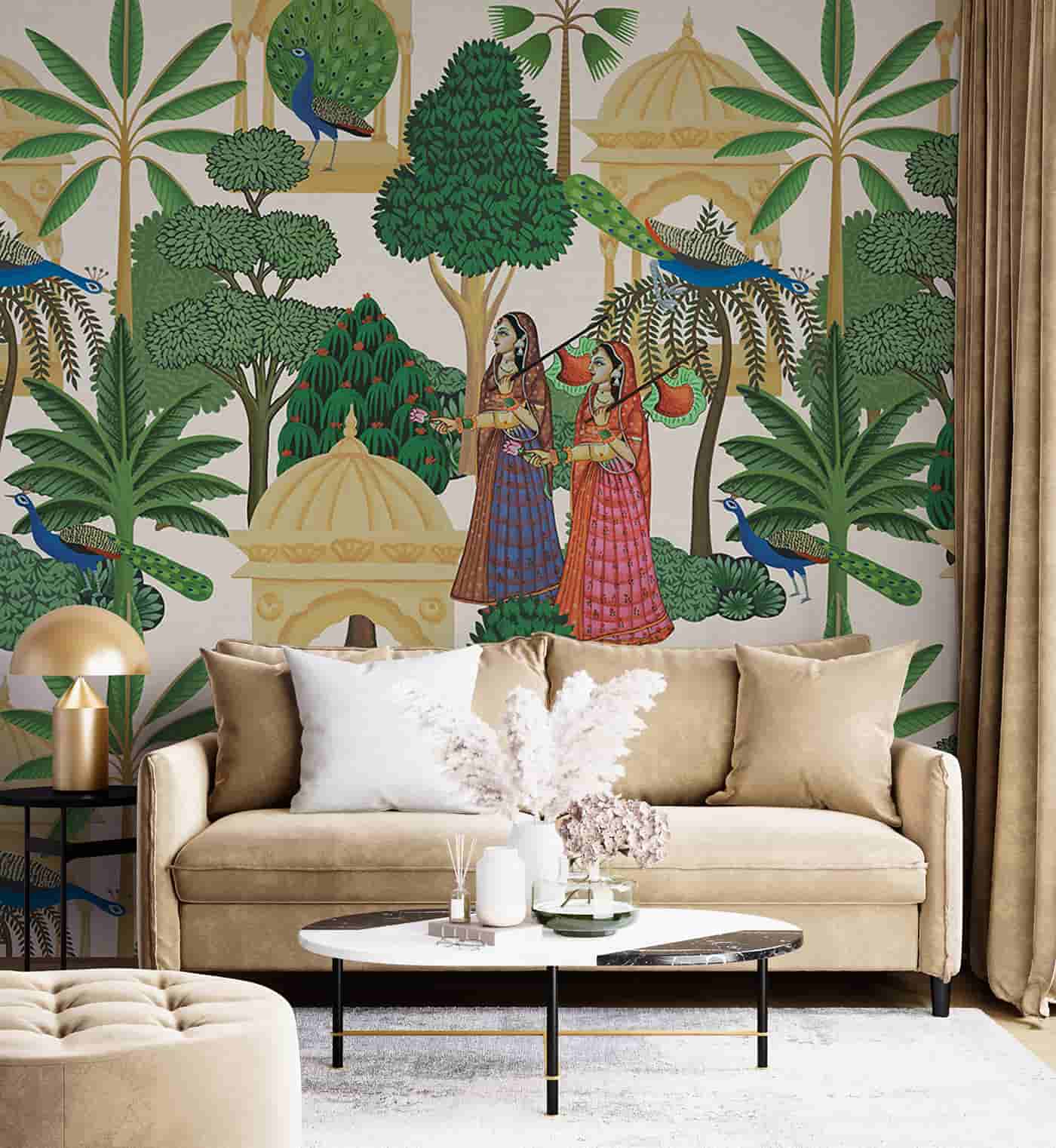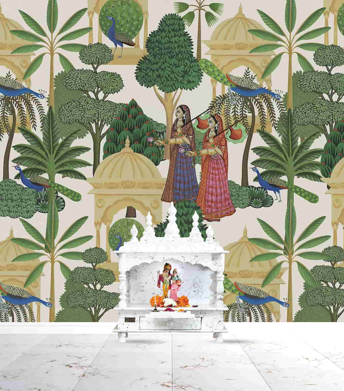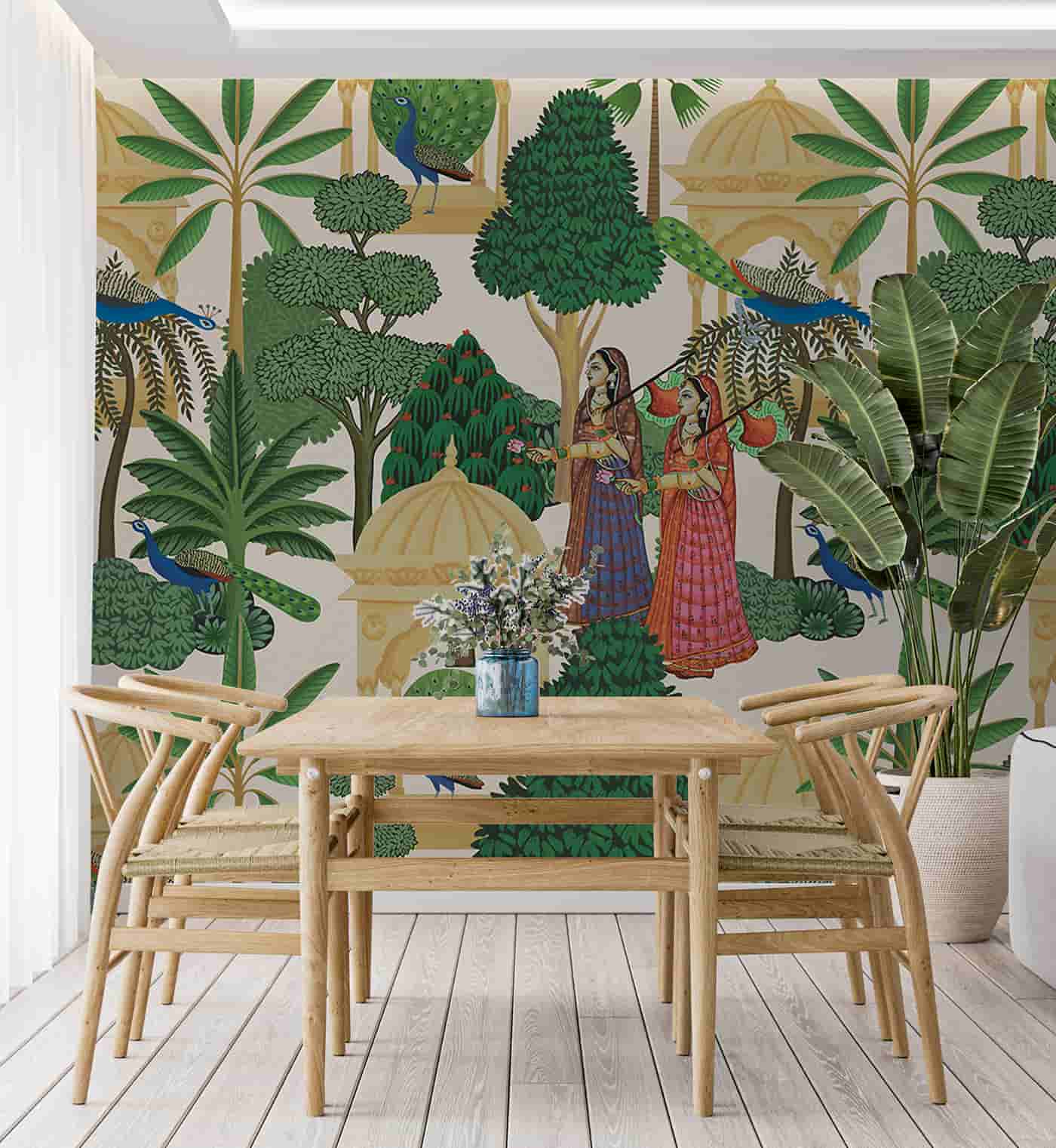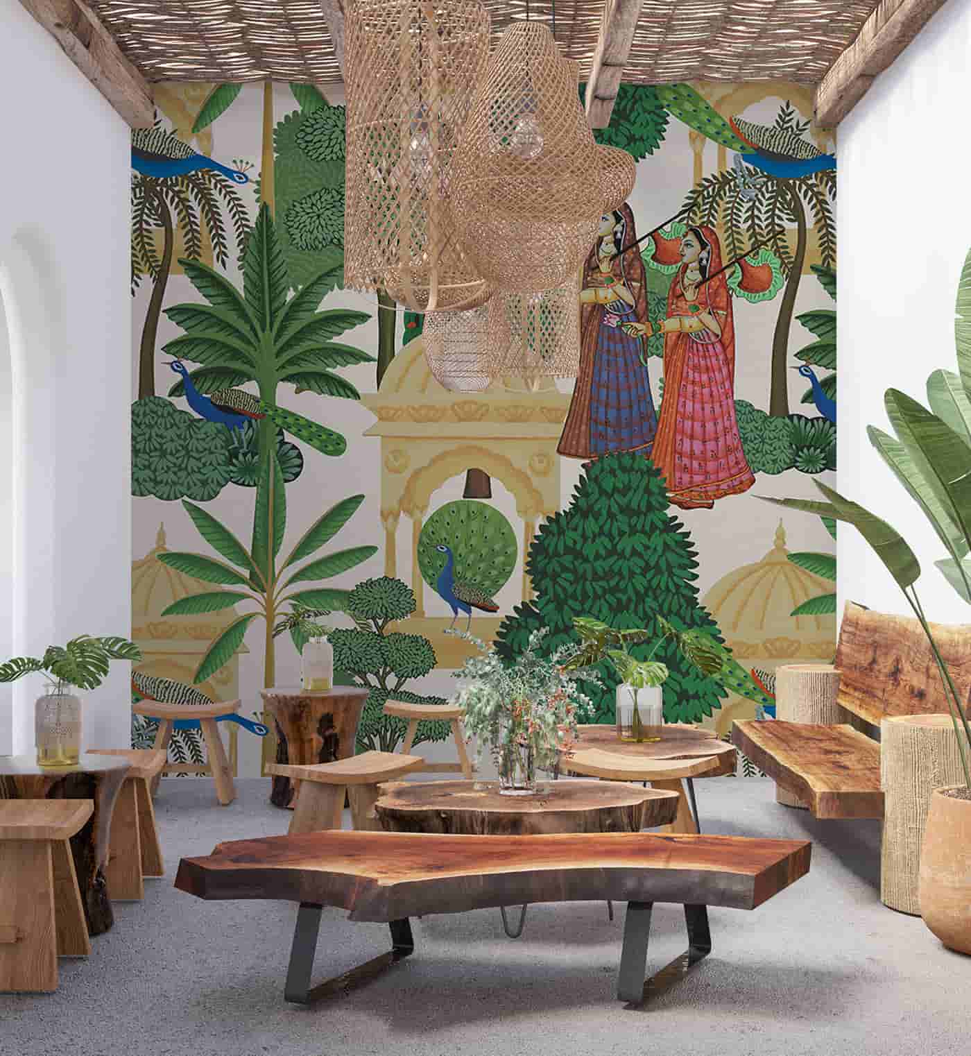 Traditional Pichwai Trees Peacock Wallpaper Mural