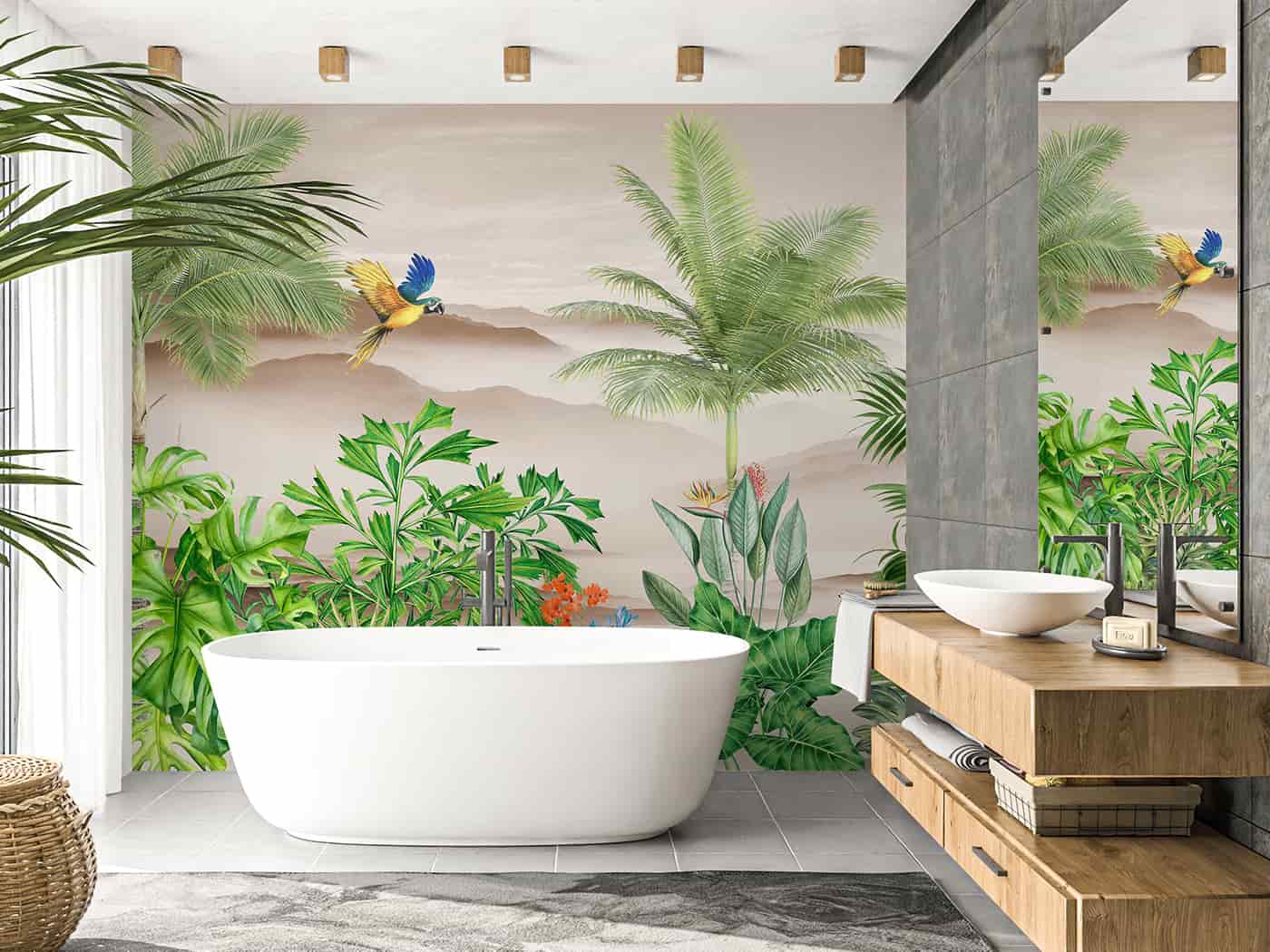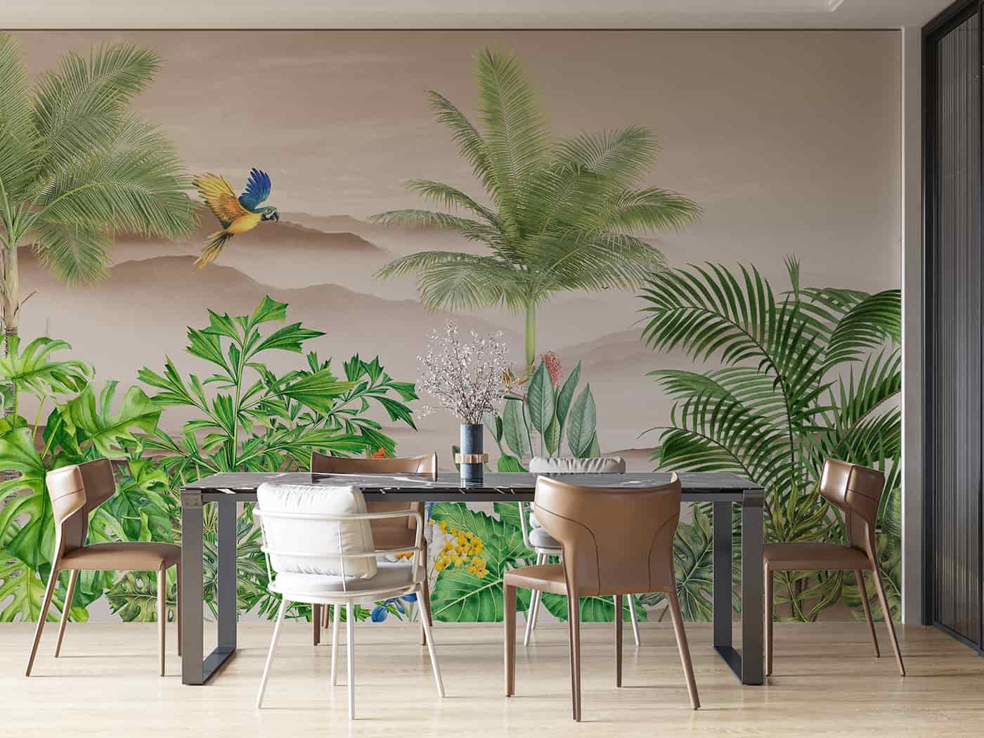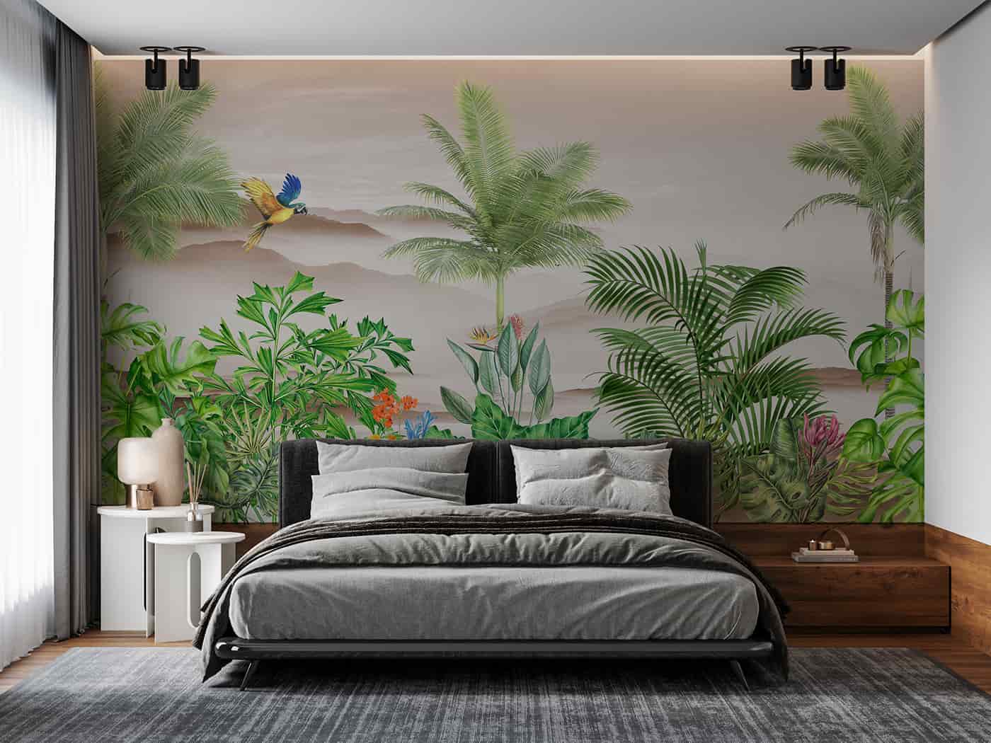 Tropical Garden Paradise Wallpaper Mural – Palm Trees & Exotic Plants Mural with Birds
