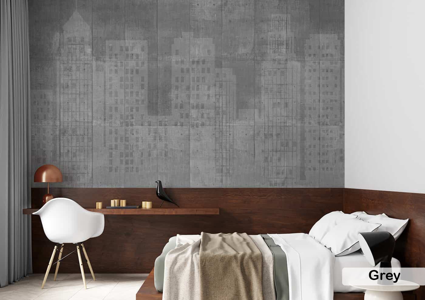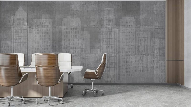 Urban City Skyline Wallpaper Concrete Textured Wall Mural for Modern Interiors