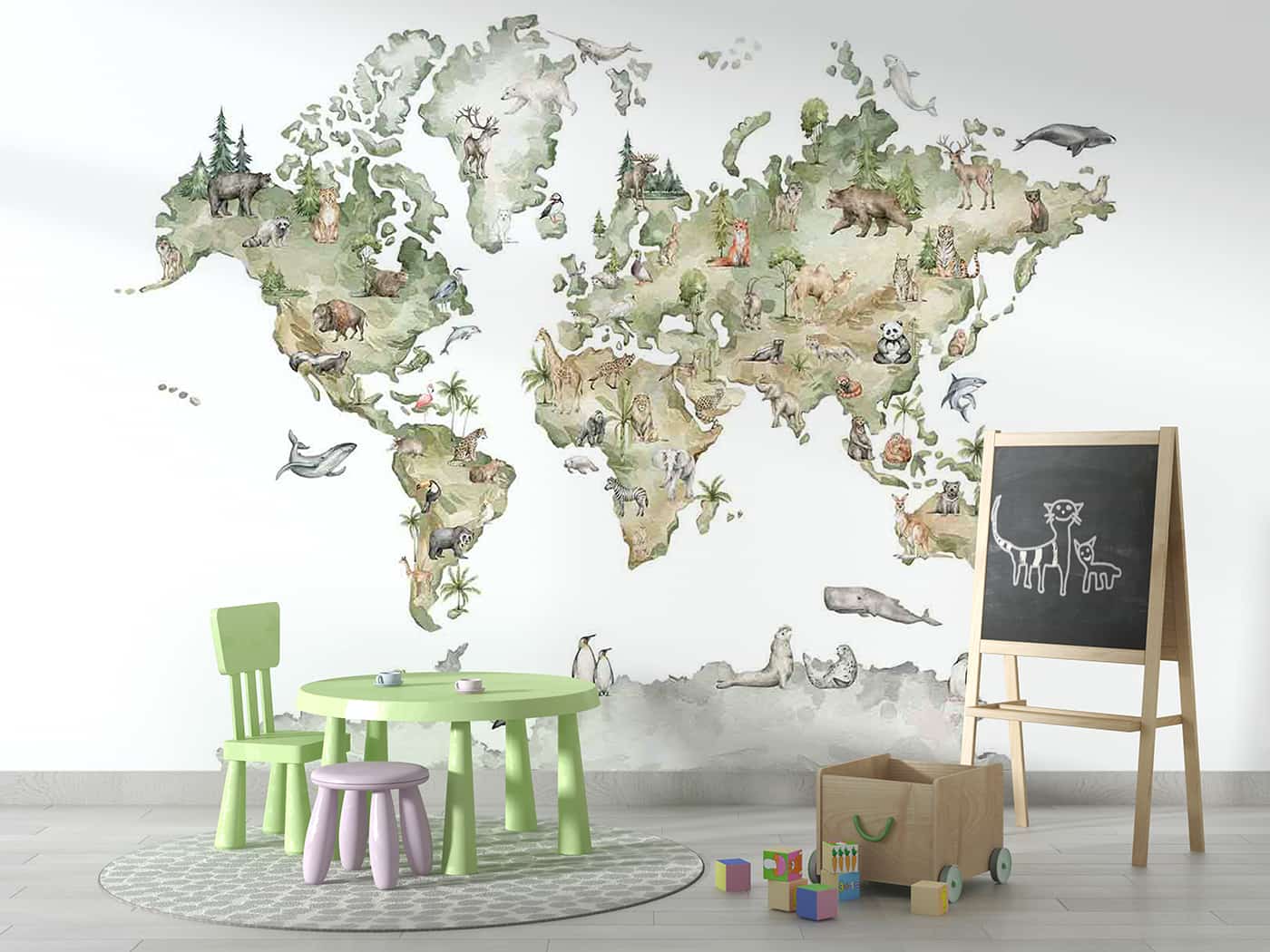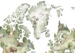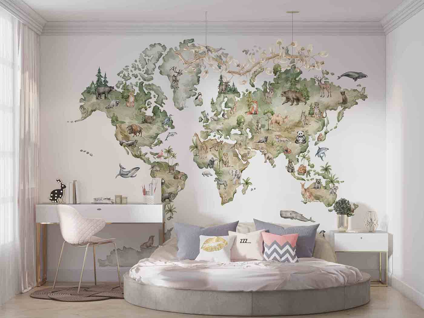 Watercolor world map with Cute animals
